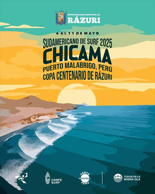 La Federación Deportiva Nacional de Tabla Peru (FENTA) anuncio oficialmente el Sudamericano de surf 2025 que se realizara del 6 al 11 de Mayo en Chicama, Puerto Malabrigo, Perú.