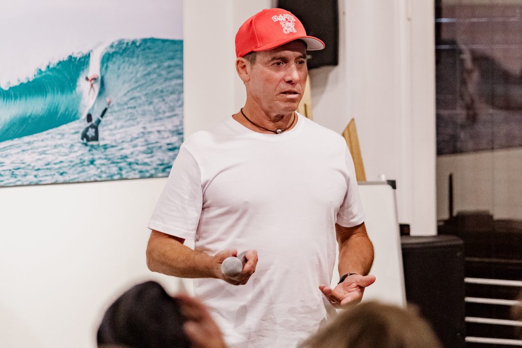 El encuentro estuvo a cargo de Santiago Aguerre, histórico surfista marplatense con 56 años de experiencia en el mar y cofundador de Reef y Ala Moana.