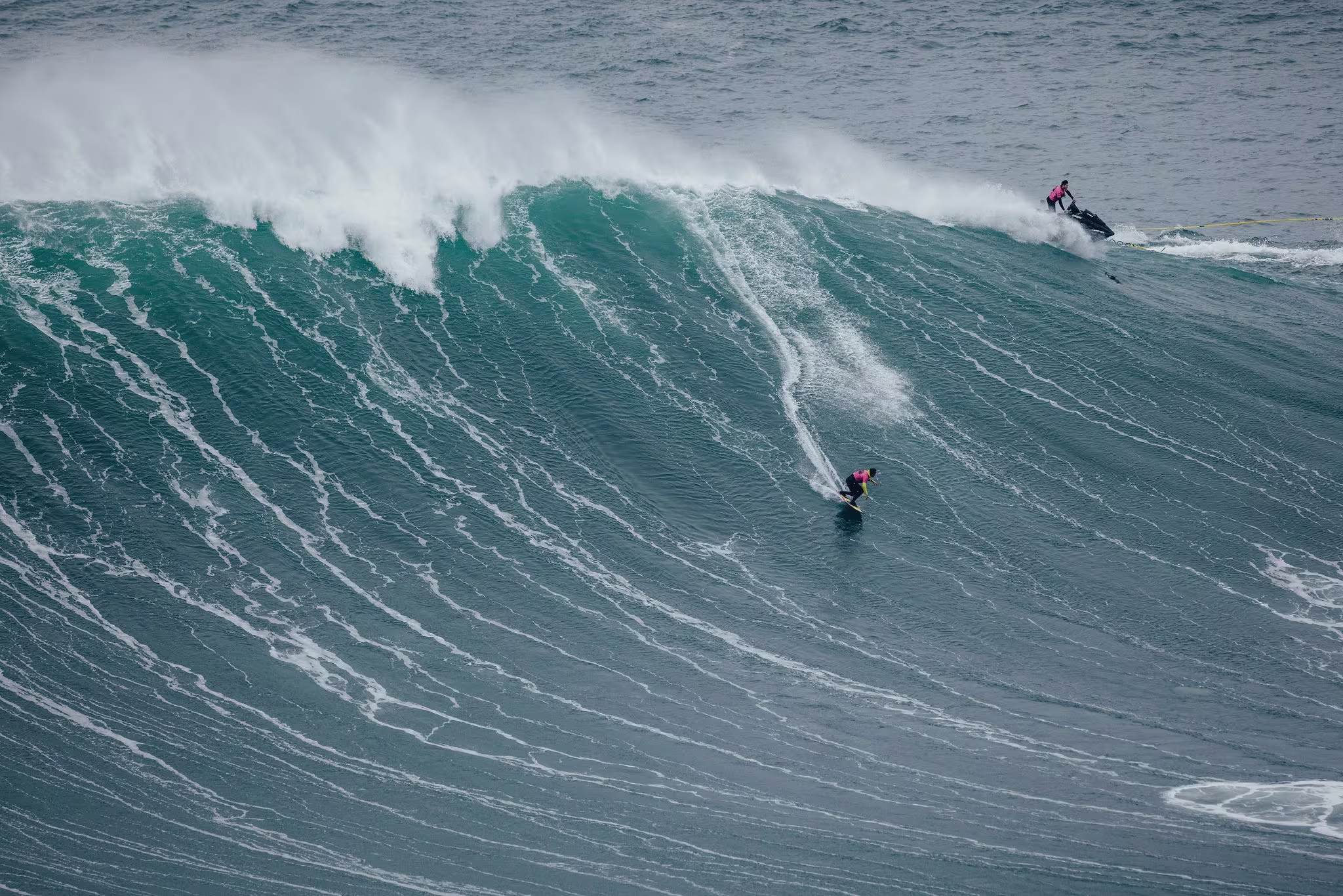 18 surfistas agrupados en equipos de dos se enfrentarán el lunes a las tremendas olas de Nazaré en seis series de 40 minutos. Cada equipo participará en dos mangas, y ambos surfistas alternarán entre surfear y conducir la moto de agua.